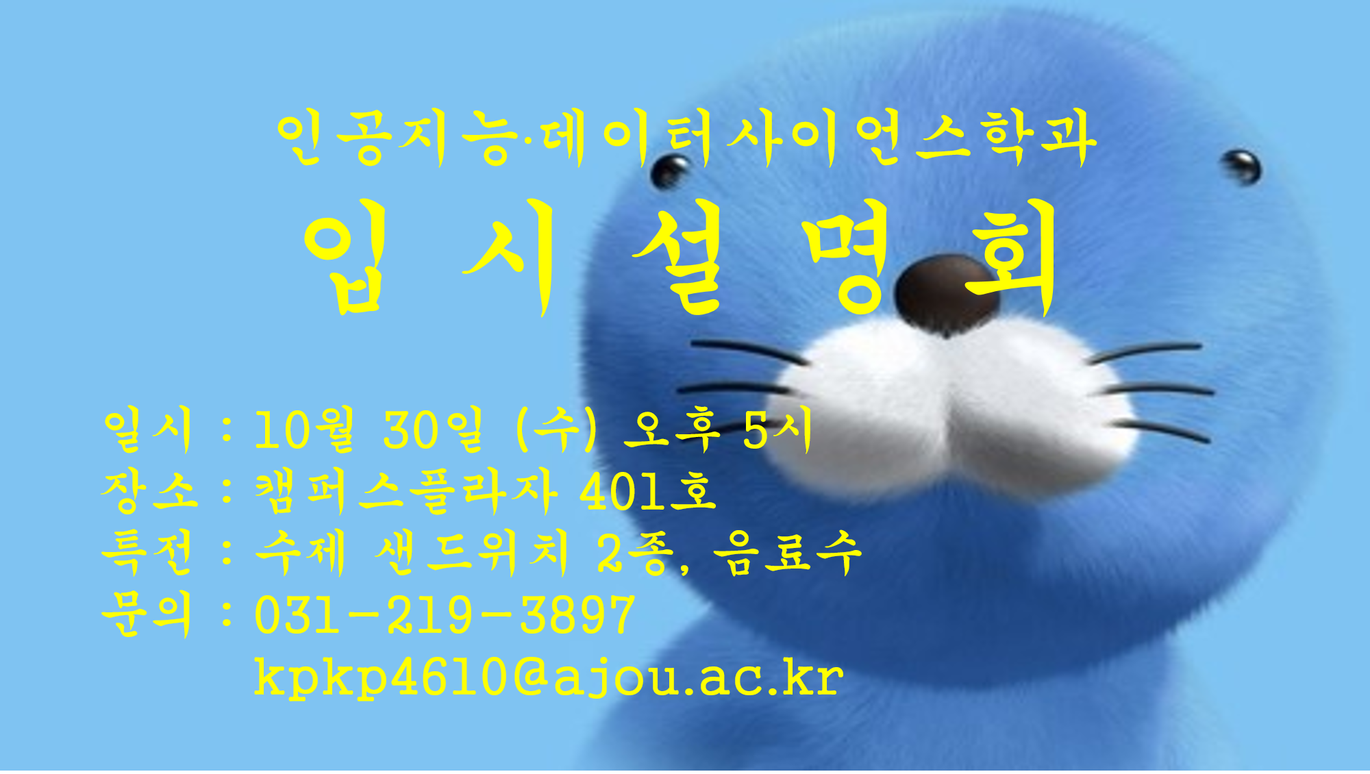 | 9036 | 입학 | 인공지능데이터사이언스학과 | 2019-10-24 | ||