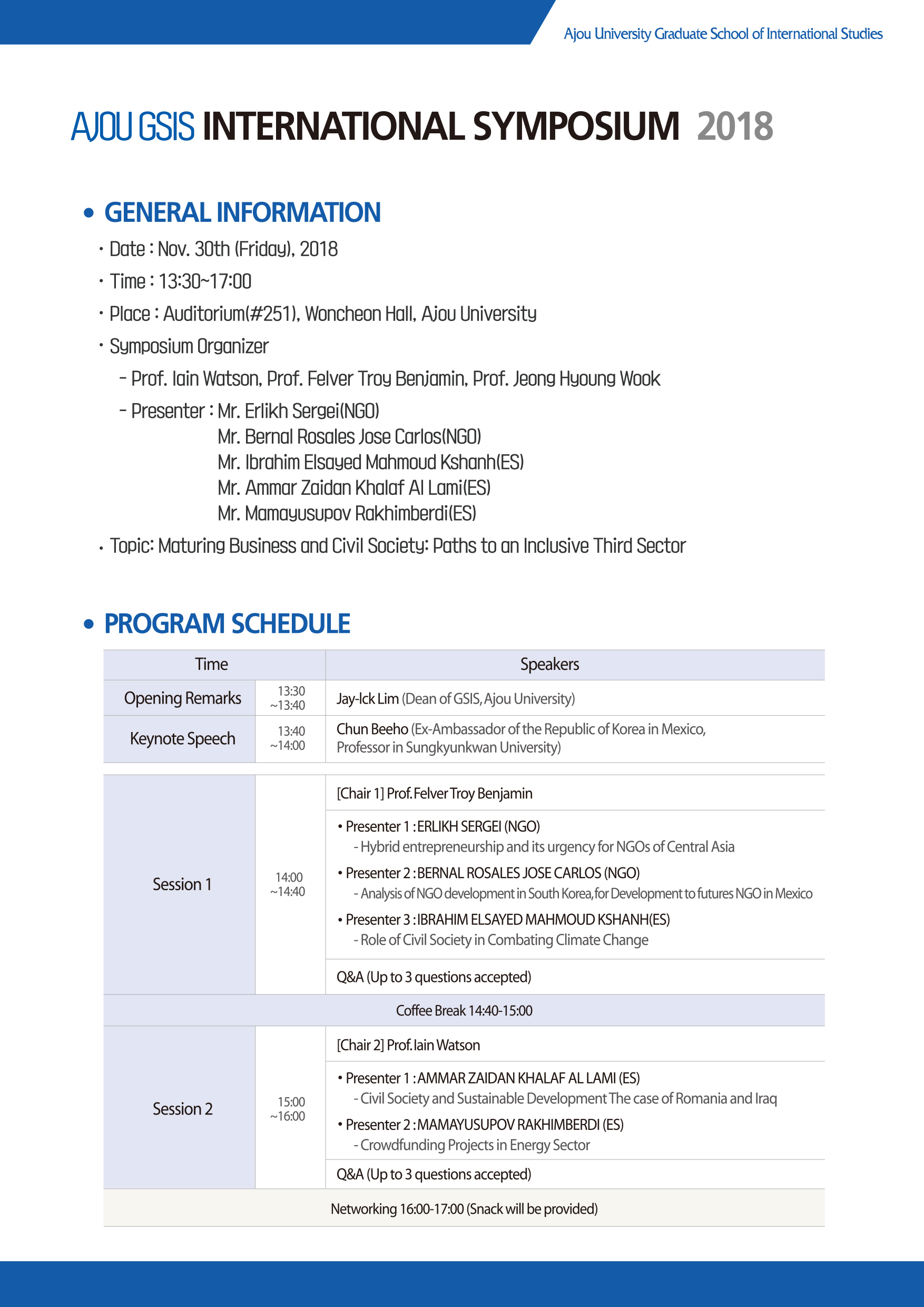 [국제대학원] Ajou GSIS International Symposium 2018