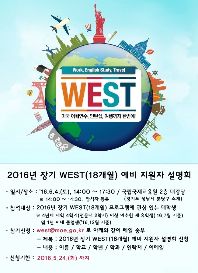 [해외인턴십] 2016년 장기 WEST(18개월) 예비 지원자 설명회 안내