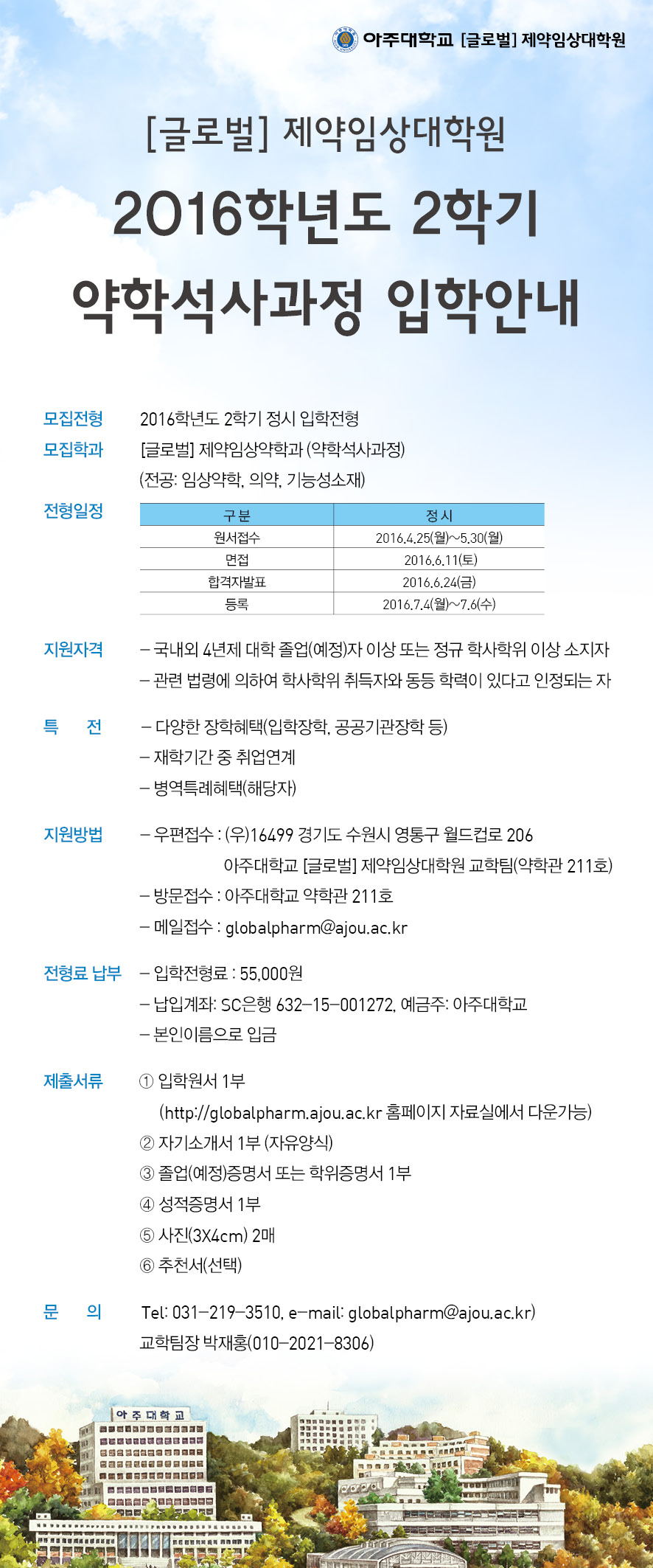[글로벌제약임상대학원] 2016-2학기 입학 안내