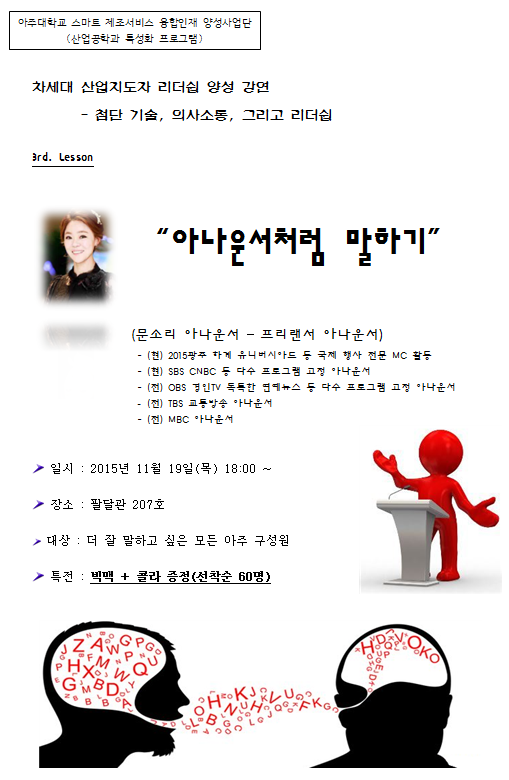 말을 잘 하고 싶은 아주인을 위한 현직 아나운서가 강의하는 '아나운서처럼 말하기' 강연(차세대 산업지도자 리더쉽 양성 세번째 강연)