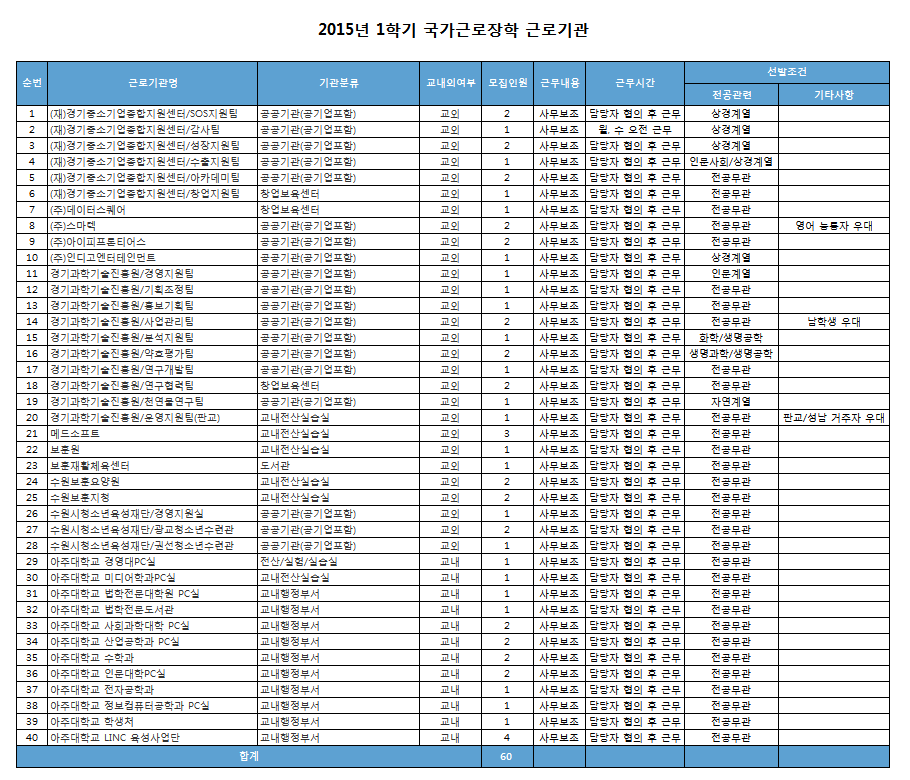 2015년 1학기 국가근로장학 모집